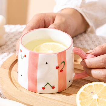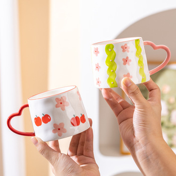थोक आपूर्ति बड़ी क्षमता 320 मिली फल फूल श्रृंखला पैटर्न सिरेमिक मिट्टी के बरतन पानी कॉफी पेय के लिए मग कप मग