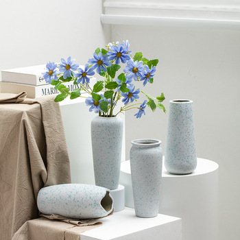 Precio al por mayor, suministro de fábrica, jarrón de cerámica de porcelana con diseño de punto azul Simple para decoración de espacio, maceta, artículo decorativo