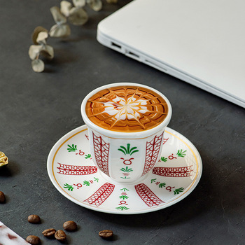 Best Seller Blanco Rojo Pequeña Capacidad 100mL Vasos Medio Oriente Ocho ángulos Diseño especial Cerámica Porcelana Café Cawa Juego de tazas