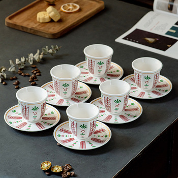 Nueva llegada caja de embalaje patrón tradicional blanco rojo árabe tamaño pequeño 100mL porcelana cerámica Cawa taza accesorios juego de 6