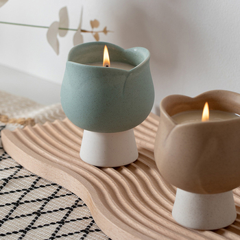 Nuevos tarros de embalaje de velas de colores, soporte de contenedor de lujo, Serie de flores de tulipán, artículo de cerámica, centro de mesa de boda, Decoración de mesa